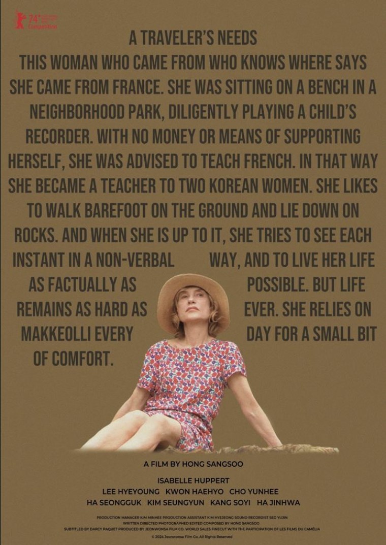 Sade öykülerin ustası Hong Sang-soo’nun Güney Kore’de geçen ödüllü yeni filminin başrolünde Fransa’nın en büyük sinema yıldızlarından Isabelle Huppert var. A Traveler’s Needs, Berlin Film Festivali’nden Jüri Büyük Ödülü ile döndü.