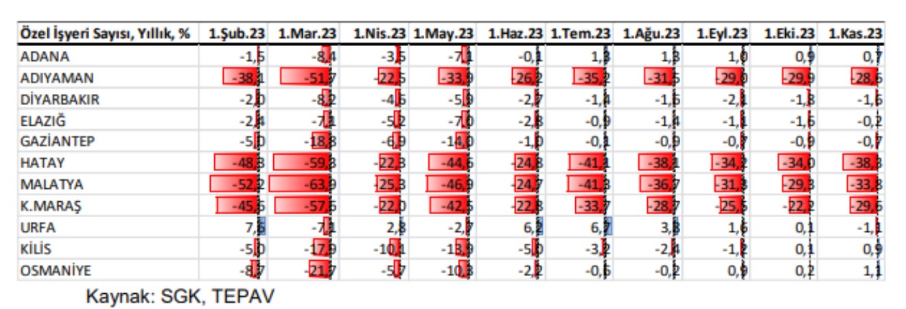 Ayrıca, depremin sebep olduğu devasa kaybın yaşam standartları üzerindeki ağır etkisinin telafi edilmesi ve toplumsal olarak en duyarlı hanelerin desteklenmesi amacıyla bölgeye barınma, yaşam, iş ve istihdam desteklerinin sürdürülmesinin önemi bir kez daha ortaya koyuyor.”